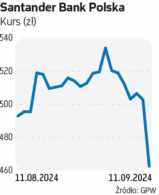 Kurs Santander Bank Polska zanurkował w środę rano o ponad 9 proc. poniżej 460 zł, najniższego poziomu od początku roku. Giełdowa wycena banku spadła o ok. 4,8 mld zł.