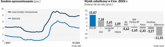 Rzeczywiście, przychody odsetkowe, czyli głównie odsetki od kredytów płacone przez klientów banków, w tym roku wciąż delikatnie rosną. Na koniec lipca było to 99,2 mld zł, co oznacza 3-proc. wzrost rok do roku.