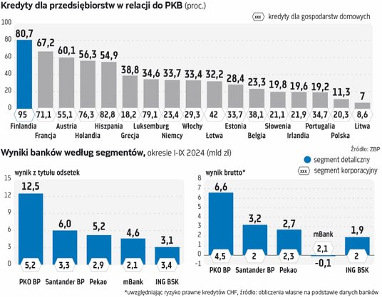 Z czego to wynika? Eksperci wymieniają dwa główne powody. Po pierwsze, to właśnie przedsiębiorstwa dają obecnie największą szansę na wzrost kredytowego biznesu. – Banki mają nadzieję na skokowy wzrost akcji kredytowej dla firm już w 2025 r. w związku z rozpędzeniem się KPO czy szerzej, zielonej rewolucji w Polsce – wyjaśnia Kamil Stolarski, analityk Santander BM.