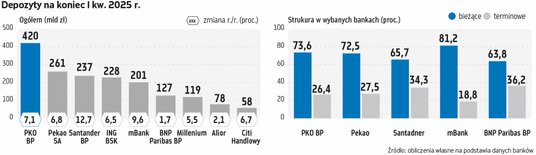 Patrząc z punktu widzenia klientów, taka sytuacja jest szczególnie niekorzystna. Bo pod pojęciem „depozyty bieżące” kryją się zwykłe rachunki bankowe oraz konta oszczędnościowe, które są często niżej oprocentowane niż lokaty terminowe. Wedle wyliczeń NBP w marcu średnie oprocentowanie depozytów bieżących wynosiło 0,7 proc., a depozytów terminowych – 3,8 proc.