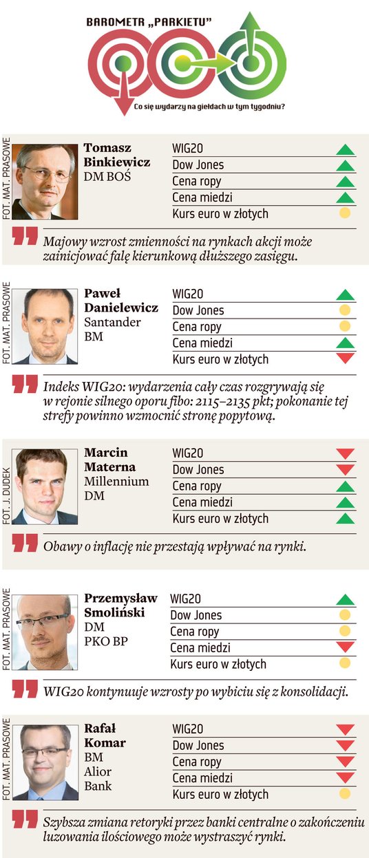 Prognozy znanych maklerów i analityków dla indeksów największych spółek w Warszawie i Nowym Jorku, cen ropy i mi...