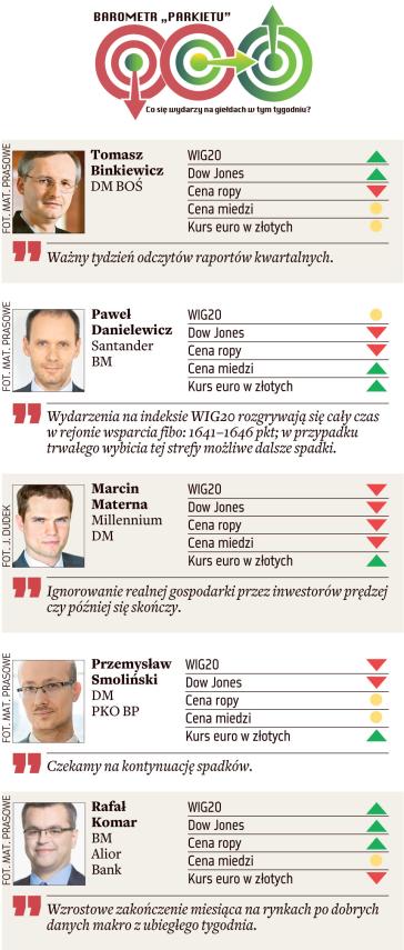 Prognozy znanych maklerów i analityków dla indeksów największych spółek w Warszawie i Nowym Jorku, cen ropy i mi...