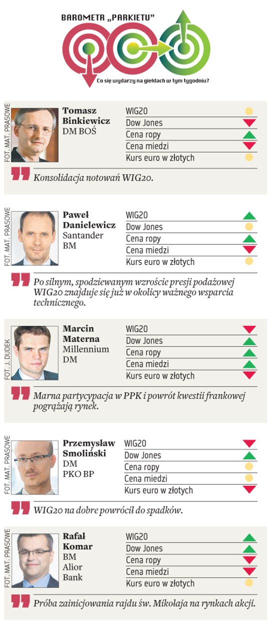 Prognozy znanych maklerów i analityków dla indeksów największych spółek w Warszawie i Nowym Jorku, cen ropy i mi...