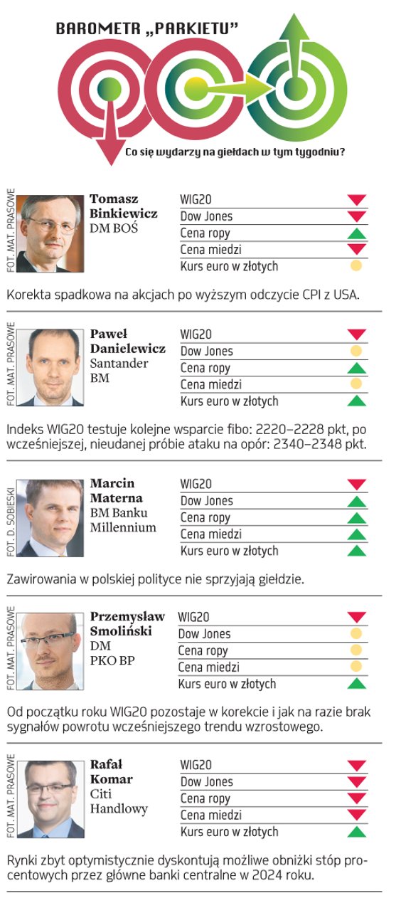 Prognozy znanych maklerów i analityków dla indeksów największych spółek w Warszawie i Nowym Jorku, cen ropy i mi...