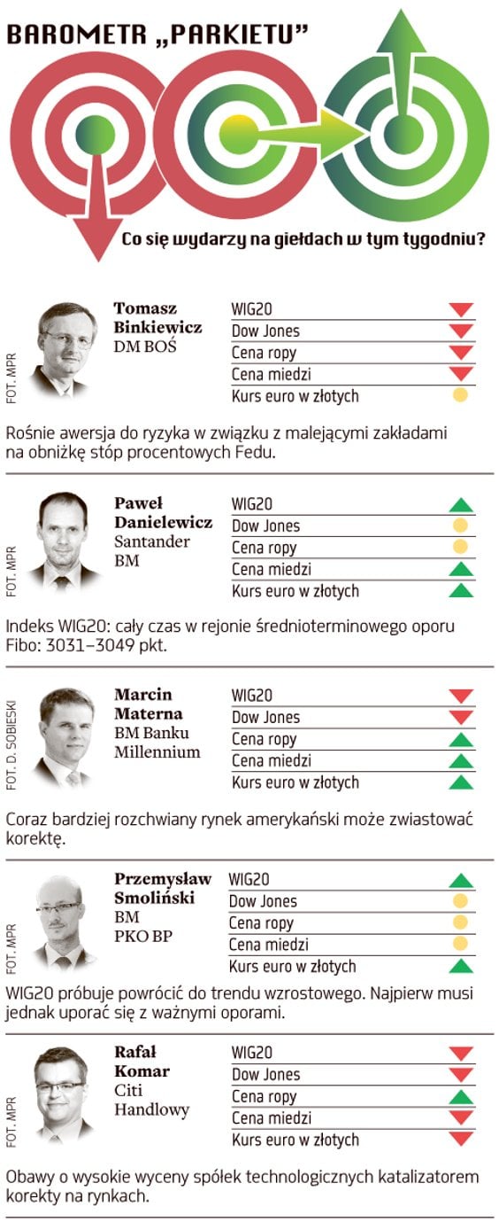 Prognozy znanych maklerów i analityków dla indeksów największych spółek w Warszawie i Nowym Jorku, cen ropy i mi...