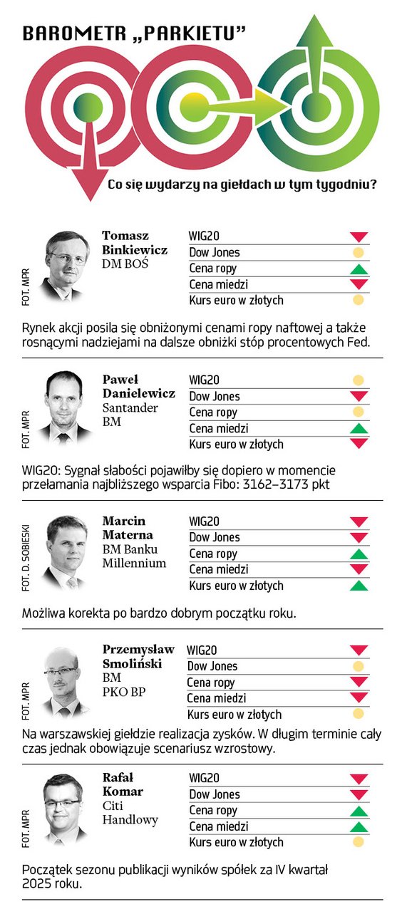 Prognozy znanych maklerów i analityków dla indeksów największych spółek w Warszawie i Nowym Jorku, cen ropy i mi...