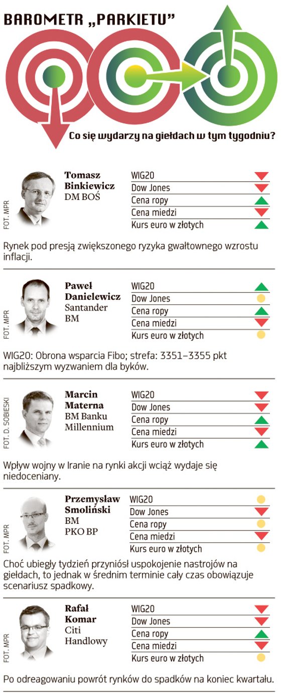 Prognozy znanych maklerów i analityków dla indeksów największych spółek w Warszawie i Nowym Jorku, cen ropy i miedzi oraz notowań pary euro/złoty.