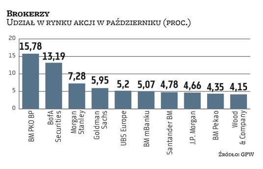 Październik był wyjątkowym miesiącem na warszawskiej giełdzie. Handel kręcił się w najlepsze, ale tym razem kluczową rolę na rynku odegrał polski broker. Mowa o BM PKO BP, które do tej pory czaiło się za plecami BofA Securiteis, aż w końcu utarło nosa największym światowym pośrednikom.
