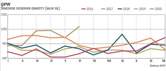 Pierwszy namacalny efekt koronawirusowego szturmu klientów maklerzy odczuli już w marcu. Wtedy to średnie dzienne obroty na rynku wyniosły 1,16 mld zł, co oznacza, że były najwyższe od sierpnia 2011 r. Przybyło także prawie 29 tys. rachunków maklerskich. Ostatni raz taki ruch widziano przy okazji wielkich prywatyzacji. Brokerzy oczywiście cieszyli się z sytuacji, ale jednocześnie starali się zachować spokój. Przyznawali bowiem, że przyszłość jest zagadką. „Nie wiadomo, jak sytuacja rozwinie się w najbliższych miesiącach. Wierzymy jednak, że nowi inwestorzy zostaną z nami na dłużej i ten rok będzie dla branży maklerskiej przełomowy" – podkreślali maklerzy.