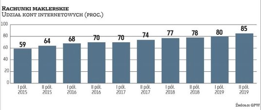Rynek usług maklerskich zmienia się oczywiście wraz z postępem technologicznym. Internet, który jeszcze kilkanaście lat temu traktowany był z dystansem przez inwestorów giełdowych, dzisiaj jest ich codziennością. Najlepiej świadczą o tym liczby. Udział rachunków internetowych w stosunku do wszystkich rachunków maklerskich na koniec 2019 r. wynosił 85 proc. Z kolei 83 proc. obrotów inwestorów indywidualnych w II półroczu ubiegłego roku zostało zrealizowanych przez Internet. O tym, że Internet na dobre zagościł w świecie inwestycji, nie trzeba nikogo przekonywać. Teraz jednak idzie kolejna fala zmian.