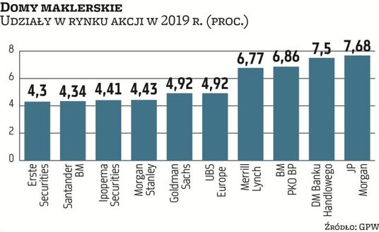Firma ta obróciła akcjami za 2,25 mld zł i tym samym zdobyła 8,17 proc. rynku. Wyprzedziła takie marki, jak Morgan Stanley (8,08 proc.) czy też JP Morgan (7,83 proc.).