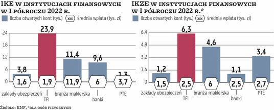 Wyróżniają się na rynku także maklerskie konta IKZE. Jak wynika z danych KNF, w I półroczu otwarto ich 4,6 tys. W tym przypadku jest to jednak wynik słabszy niż w analogicznym okresie rok wcześniej. Wtedy pojawiło się 5,7 tys. kont. To powoduje, że o rekord w całym roku w przypadku IKZE będzie trudniej niż w przypadku IKE. Do pobicia jest bowiem wynik aż 21,6 tys. kont z 2021 r. I w tym jednak przypadku można doszukać się wielu pozytywów.