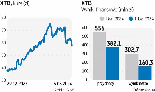 Po tym, jak w piątek po południu firma XTB opublikowała wstępne wyniki finansowe za II kwartał 2024 r., pytanie brzmiało nie „czy”, tylko jak mocno zostaną przecenione akcje spółki w poniedziałek. Pech chciał, że początek tego tygodnia na światowych rynkach przyniósł dodatkowo masową ucieczkę od ryzyka. Przecena XTB była więc przesądzona.