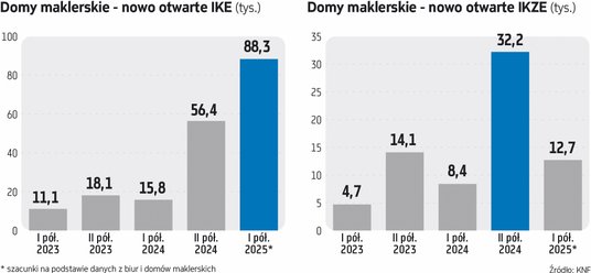 Nawet jeśli jednak pominąć XTB, to i tak przedstawiciele branży maklerskiej mówią o coraz większym zainteresowaniu kontami emerytalnymi. Dotyczy to nie tylko samych IKE, ale także i IKZE. W przypadku tych drugich również I półrocze przyniosło znaczący przyrost. Z ankiety przeprowadzonej przez „Parkiet” wynika, że w I półroczu przybyło 12,7 tys. IKZE, co także jest nowym rekordem I części roku.