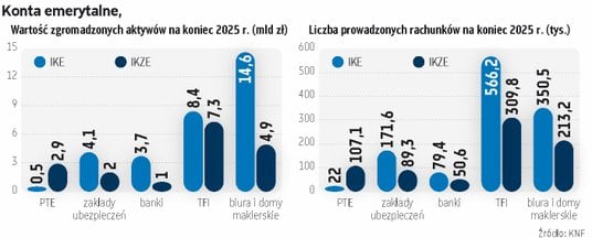 – Pomysł na bezprowizyjne inwestowanie w ETF-y na rachunkach IKE/IKZE wpisuje się w strategię mBanku do 2030 r. i zasady zdrowych finansów – mówi Kamil Maliszewski, dyrektor w BM mBanku, i dodaje: – W ostatnich latach obserwujemy wzrost zainteresowania rachunkami IKE/IKZE oraz korzystaniem z ETF-ów, przy użyciu których transakcje, inwestując z myślą o emeryturze, wykonuje ponad 80 proc. klientów. Wprowadziliśmy zatem pilotażowo „akcję specjalną ETF-y za 0 zł”. Przełożyło się to na rekordową akwizycję klientów w IV kwartale. Cały rok zamknęliśmy pozyskaniem 50 tys. nowych rachunków emerytalnych. Bardzo dobre przyjęcie oferty wśród klientów połączone ze świetnymi wynikami pozyskiwanych nowych rachunków IKE/IKZE oraz wpisanie zasad zdrowych finansów do strategii mBanku ułatwiły podjęcie decyzji o wprowadzeniu oferty „ETF-y za 0 zł” na stałe. Dzięki temu w pierwszych miesiącach tego roku notujemy znaczne procentowe, licząc rok do roku, wzrosty wartości środków zainwestowanych w ETF-y na rachunkach klientów oraz liczby pozyskanych nowych inwestorów, co potwierdza słuszność naszej proklienckiej strategii – mówi Maliszewski. Działania BM Banku zaktywizowały też innych brokerów. Swoją ofertę zmienił m.in. DM BOŚ. Broker co najmniej do końca lutego 2027 r. również udostępnia możliwość zawierania transakcji na rynku ETF w ramach IKE i IKZE bez prowizji. Analogiczna oferta obowiązuje do końca tego roku w Erste BM. O aspekcie cenowym myśli także BM Alior Banku.