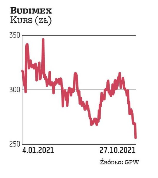 Budimex odnotował wyższy zysk w III kwartale i posiada rekordowy portfel zleceń. Ponadto spółka ma szansę zakończyć 2021 r. lepszą dynamiką przychodów ze sprzedaży w stosunku do wyniku po trzech kwartałach. Mimo to na półmetku środowej sesji notowania spadały o blisko 5 proc., do 256 zł.