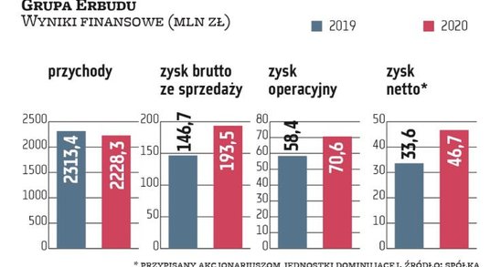 Mimo pandemii skonsolidowany zysk netto Erbudu w 2020 r. wzrósł o 44 proc., do rekordowego poziomu 50,5 mln zł. Zysk operacyjny zwiększył się o 21 proc., do 70,6 mln zł, z czego 57 proc. wypracowała spółka zależna Onde, która niedawno złożyła prospekt emisyjny.