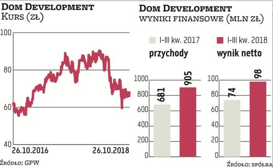 W 2018 r. Dom Development planuje przekazanie 3,6 tys. lokali (o 200 mniej, niż planowano wcześniej, i tyleż samo mniej względem 2017 r.), z czego 1,6 tys. w ostatnim kwartale. Wiceprezes Janusz Zalewski podkreślił, że słabszy wynik w ujęciu ilościowym nie powinien się przełożyć na ubytki wyniku finansowego.