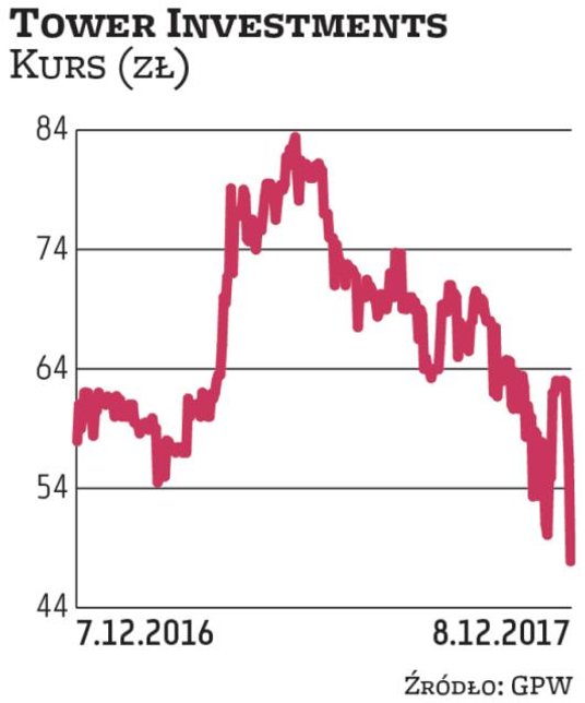 Kompromis z inwestorami finansowymi jest tym większy, że analitycy DM BOŚ – który jest oferującym – oszacowali wartość akcji na 91,6 zł metodą porównawczą i 115,3 zł metodą dochodową. Oferta publiczna towarzyszy przeprowadzce Tower Investments z NewConnect na rynek główny GPW. W piątek na małym parkiecie kurs nurkował o nawet 16,5 proc., do 47 zł. Na początku grudnia za walory płacono 63 zł, ale pod koniec listopada 50 zł.