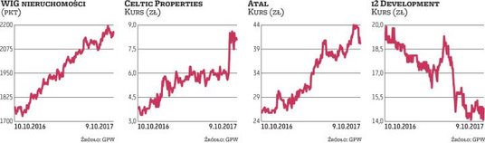 Najwyższy zwrot dał inwestorom Celtic Properties, budujący Miasteczko Ursus w Warszawie. Kurs akcji niewielkiej firmy, której próżno szukać w rankingach sprzedaży lokali, skoczył o 110 proc., do niemal 8 zł – głównie za sprawą wydanej we wrześniu rekomendacji East Value Research. Analitycy oszacowali cenę docelową akcji na 11,74 zł. O 66 proc., do 3,8 zł, podrożały w ciągu roku papiery innego mniejszego gracza, Triton Development.