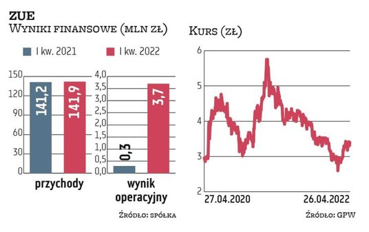 Według wstępnych szacunków w I kwartale br. ZUE, generalny wykonawca linii kolejowych i tramwajowych, przy zbliżonych rok do roku przychodach rzędu 141 mln zł zwiększyło zysk brutto ze sprzedaży o 54 proc., do 7,4 mln zł. Zysk netto wyniósł 4,1 mln zł wobec 0,01 mln zł.