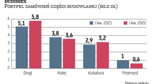 W całym roku Budimex liczy na pozyskanie zleceń o podobnej wartości, co w 2021 r., czyli około 7 mld zł. Fundamentem mają być dalej zlecenia drogowe i kolejowe: GDDKiA i PKP PLK plany mają ambitne, ale szczególnie w tym drugim przypadku dużo zależy od funduszy unijnych. Firma liczy też na aktywność Polskich Sieci Energetycznych, rozwija też działalność na ościennych rynkach, głównie w Niemczech, Czechach i Słowacji. Budimex liczy też na zlecenia na budowę infrastruktury wojskowej i zlecenia m.in. od NATO – położenie Polski i sytuacja geopolityczna będą temu sprzyjać. Firma będzie też dalej ograniczać ekspozycję na mieszkaniówkę.