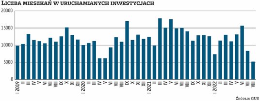 W ślad za postępującym kurczeniem się popytu na kredyty hipoteczne i spadkiem sprzedaży mieszkań deweloperzy przystąpili do mocnego cięcia inwestycji. Według danych GUS w sierpniu firmy ruszyły z budową zaledwie 5,2 tys. lokali, o 63 proc. mniej rok do roku (pamiętając, że sezon budowlany w 2021 r. był okresem bezprecedensowego boomu) i 38 proc. mniej niż w lipcu.