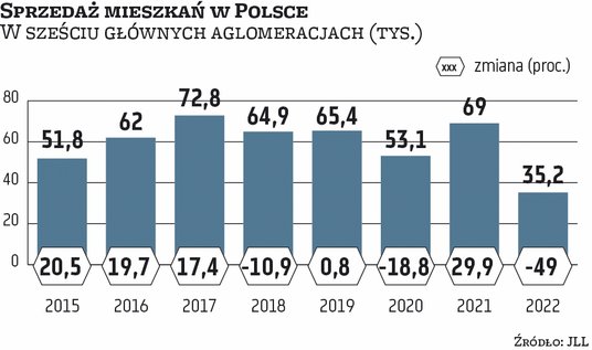 Atal jako pierwszy deweloper z GPW podał wyniki sprzedaży mieszkań w IV kwartale 2022 r. Budująca w siedmiu aglomeracjach spółka znalazła nabywców (umowy deweloperskie i przedwstępne) na 385 lokali, o 64 proc. mniej rok do roku i 2 proc. więcej kwartał do kwartału. Oznacza to, że ostatnie miesiące przyniosły stabilizację sprzedaży rzędu 125–130 mieszkań miesięcznie i takiej tendencji Atal spodziewa się w najbliższym półroczu.