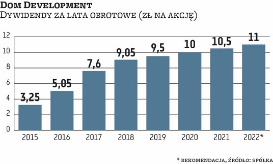 Od dołka w październiku do środy kurs budującego w czterech miastach dewelopera odbił o 53 proc., do 122 zł. W czwartek, po publikacji rekordowych wyników finansowych i ogłoszeniu propozycji najwyższej w historii dywidendy, papiery taniały o 2,5 proc., do 119 zł. Przy rekomendacji 11 zł na akcję (ubiegłoroczny rekord to 10,5 zł) oznacza to stopę dywidendy rzędu ponad 9 proc.