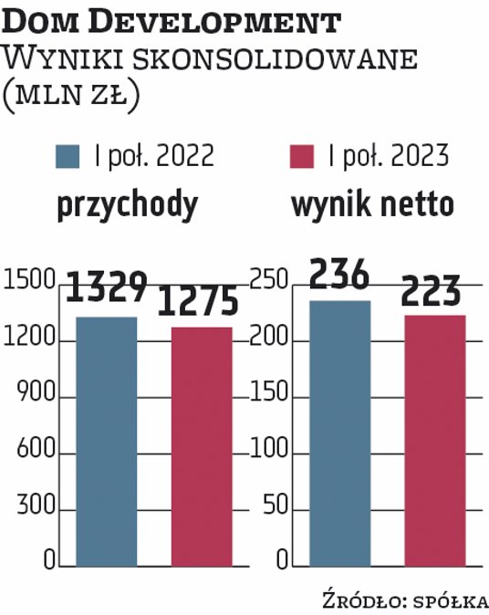 Dom Development ruszył właśnie z kampanią 500 mieszkań dla beneficjentów programu „Bezpieczny kredyt”, ale nie jest to główny motor zwyżek. Spółka ma pulę lokali w Trójmieście i Krakowie, ale generalnie oferuje produkt z wyższej półki cenowej – menedżerowie podkreślili, że przełomem było poluzowanie kryteriów badania zdolności kredytowej, co odblokowało możliwości osób korzystających ze standardowych pożyczek. Cały czas aktywni są gotówkowcy. W II kwartale br. udział klientów korzystających z kredytów wyniósł 46 proc., wobec 40 proc. w I kwartale br. oraz 30 proc. w II kwartale 2022 r.