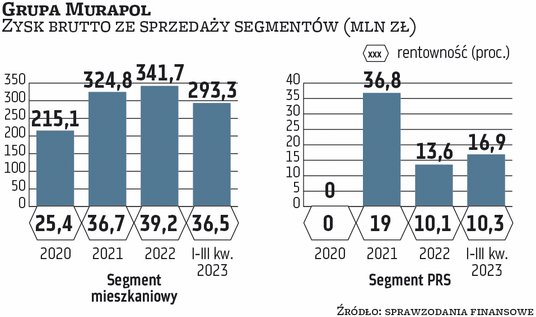 W 2024 r. zarząd Murapolu będzie rekomendować wypłatę co najmniej 200 mln zł dywidendy w dwóch transzach: w ramach zwykłej dywidendy z zysku za 2023 r. i zaliczki na poczet dywidendy za 2024 r. To łącznie 4,9 zł brutto na akcję, co oznacza 14-proc. stopę dywidedny brutto przy cenie walorów wynoszącej 35 zł.