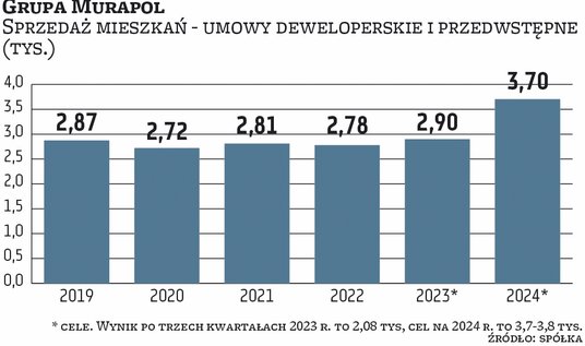 Gros zapisów w transzy detalicznej spodziewany jest w ostanim dniu. Co zatem warto wiedzieć? Murapol reklamuje się jako spółka impregnowana na zawirowania rynkowe (stabilna sprzedaż lokali w latach 2020–2023), wzrostowa (planowany skok sprzedaży w 2024 r.) i dywidendowa.
