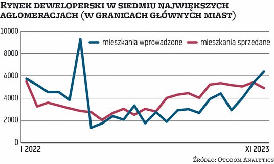 Jak podkreśla Katarzyna Kuniewicz, szefowa działu badań rynku mieszkaniowego w Otodom Analytics, trudno wyrokować, byśmy mieli do czynienia ze zmianą trendu po stronie popytu. Transakcji co prawda w listopadzie zawarto mniej, ale rezerwacjami było objęte 8,7 tys. mieszkań, czyli najwięcej od połowy 2021 r., kiedy Polaków ogarnęło szaleństwo zakupów (niskie stopy, odroczony popyt z pandemii, zakupy jako zabezpieczenie oszczędności przed inflacją).