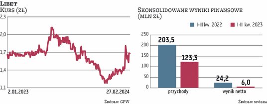 Od końca ubiegłego roku kurs akcji Libetu znajduje się w trendzie wzrostowym. Jeszcze na początku grudnia można było kupić walory wrocławskiej spółki po mniej niż 1,2 zł. W połowie lutego kurs przekraczał już chwilami nawet 1,8 zł, a obecnie znajduje się w dość wąskich widełkach cenowych wynoszących 1,6–1,7 zł.