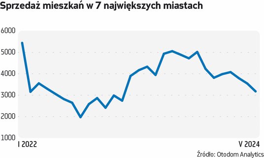 Według Otodom Analytics średnia sprzedaż mieszkań w tym okresie w siedmiu największych aglomeracjach wyniosła 124 lokale dziennie. To tyle, ile pod koniec 2022 r., kiedy rynek borykał się z kryzysem kredytowym, a ówczesny rząd zaczął obiecywać uruchomienie programu tanich pożyczek na mieszkania. Dla porównania: w sierpniu 2022 r., w dołku koniunktury, średnia sprzedaż sięgała zaledwie 80 lokali dziennie, a już rok później, w szczycie napędzonym „Bezpiecznym kredytem 2 proc.” – prawie 220.