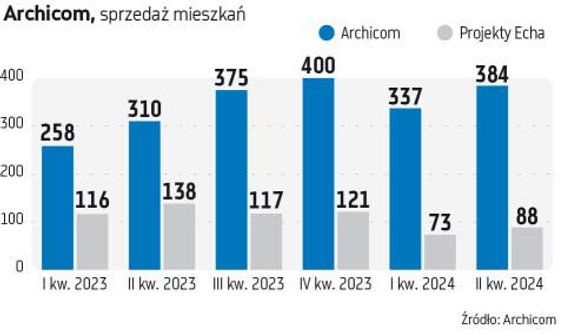 W I połowie br. kontrolowany przez Echo Investment Archicom znalazł nabywców na 882 mieszkania (o 7 proc. więcej niż rok wcześniej), z tego 472 w II kwartale. Oznacza to, że w II półroczu firma musi podpisać ponad 1,7 tys. umów, tymczasem w wakacje wyhamowanie na rynku mieszkaniowym przyspieszyło. Transakcji jest mniej, a podaż cały czas rosła, co sprawiło, że oferta mieszkań w największych aglomeracjach mocno się zwiększyła.