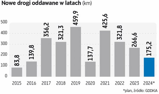 Podpisano 33 umowy na budowę dróg o łącznej długości blisko 430 km i wartości nieco ponad 16 mld zł – Generalna Dyrekcja Dróg Krajowych i Autostrad (GDDKiA) podsumowała niespełna dziesięć miesięcy obecnego roku. Większość z tych umów (25) dotyczy blisko 350 km dróg ekspresowych, których budowa ma pochłonąć ponad 15 mld zł. Pozostałe 8 to inwestycje w obwodnice o długości ponad 53 km i wartości blisko 1,2 mld zł. Według GDDKiA przed końcem roku liczba podpisanych kontraktów ma jeszcze wzrosnąć.