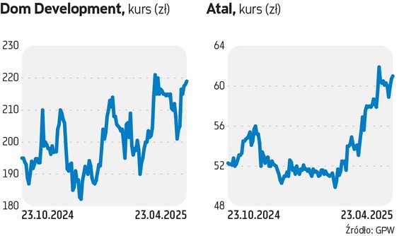 Od połowy marca indeks WIG-nieruchomości zyskał prawie 14 proc. W awangardzie wzrostów są Develia (27 proc.), Atal (19 proc.), Dom Development (18 proc.), Archicom (17 proc.) i Murapol (11 proc.). Ale nie wszyscy korzystają z poprawy nastrojów – żadnych większych zmian nie widać na wykresach Wikany, Lokum i Marvipolu.