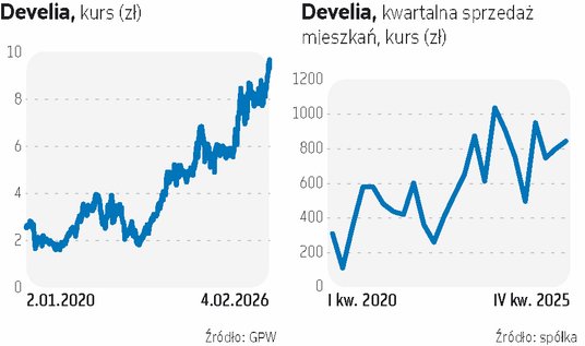 Develia celuje w sprzedaż w tym roku 3,6–3,8 tys. mieszkań, tym samym spółka chce poprawić ubiegłoroczny rekord. W 2025 r. plan zakładał sprzedaż 3,1–3,3 tys. lokali, a faktycznie wypracowany wynik to 3345 mieszkań, o 5 proc. więcej niż rok wcześniej.