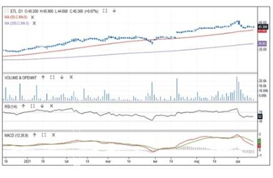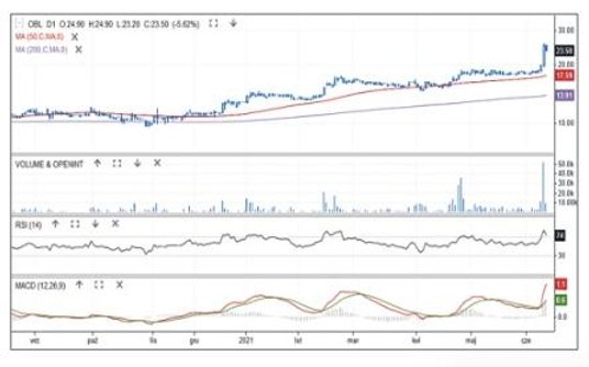 Telekomunikacyjny diler, podobnie jak Ifirma, jest w układzie hossy. Różnica polega na tym, że w czerwcu, zamiast bić rekordy, kurs wszedł w fazę schłodzenia. Strata od początku miesiąca przekraczała w porywach 15 proc., co było jednym z najgorszych wyników na GPW. Co jednak istotne, fala spadkowa zatrzymała się nad 50-sesyjną średnią, a spadające słupki wolumenu sugerują koniec fazy dystrybucji. Do tego dochodzą schłodzone oscylatory RSI i MACD. Na tej podstawie uzasadnione jest oczekiwanie kolejnego ataku na szczyt. Opór to 53,45 zł, a wsparcie – 42 zł.