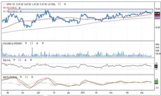 Notowania akcji giełdy poruszają się w trendzie wzrostowym, ale jego tempo systematycznie maleje. Lokalne dołki respektują wprawdzie średnią z 200 sesji i położone są coraz wyżej, ale z wybijaniem nowych maksimów nie jest już tak łatwo. W maju kurs podszedł pod silne pasmo oporowe przy 50 zł i zawrócił. W piątek cena zbliżała się do 50-sesyjnej średniej (47 zł). Jeśli wsparcie pęknie, kurs może zejść do dziennej dwusetki (45,1 zł). Perspektywa takiej korekty jest całkiem realna. Dopiero na długoterminowej średniej zobaczymy siłę byków.