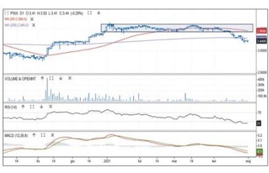 Od połowy marca akcje lubelskiej spółki potaniały o blisko 50 proc. W minionym tygodniu cena dotarła do 9,6 zł, a więc znalazła się w długoterminowej strefie wsparcia. Po drodze pękły średnie z 50 i 200 sesji. Z jednej strony podaż wydaje się mocna i jeśli bariera pęknie, wyprzedaż może nabrać rozpędu. Z drugiej silna bariera może prowokować kontry popytu, zwłaszcza że RSI i MACD sygnalizują już wyprzedanie. Średnie stanowią najbliższe opory. Notowania warto obserwować. Wybicie może zacząć trwalszy trend zgodny z kierunkiem wybicia.