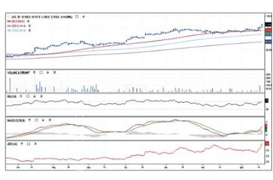 Producent komunikatora internetowego podobnie jak GPW wykazuje relatywną siłę względem szerokiego rynku. Kurs jego akcji wykorzystał linię średniej z 50 sesji, by wydostać się z korekty, i w minionym tygodniu ustanowił historyczny rekord 117 zł. Nowy szczyt hossy jest klasycznym sygnałem kontynuacji trendu, wzmocnionym w tym przypadku podwyższonym obrotem. Oscylatory RSI i MACD dotarły do stref wykupienia, więc może dojść do schłodzenia Wspomniana średnia stanowi jednak najbliższe wsparcie – obecnie znajduje się przy 93,6 zł.