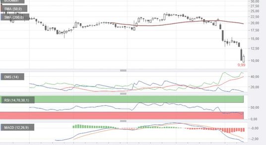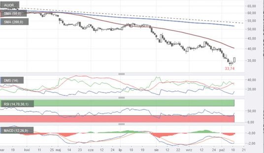 Notowania akcji producenta gier znalazły się w piątek na poziomie 9,7 zł. To najniższa wycena w krótkiej historii spółki, niższa o 49 proc. od ceny emisyjnej. Trwający od dwóch miesięcy spadek notowań to pokłosie rozczarowania wynikami i obaw o to, czy spółka poradzi sobie z optymalizacją kosztów. Od strony technicznej przewaga podaży nie ulega wątpliwości. Średnia krocząca z 50 sesji zaczęła już zniżkować, podobnie jak MACD. RSI(14) wszedł już w strefę wyprzedania, co daje szanse na korektę, ale w szerszym ujęciu to kontynuacja spadku wydaje się bardziej realna.