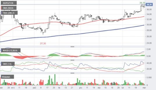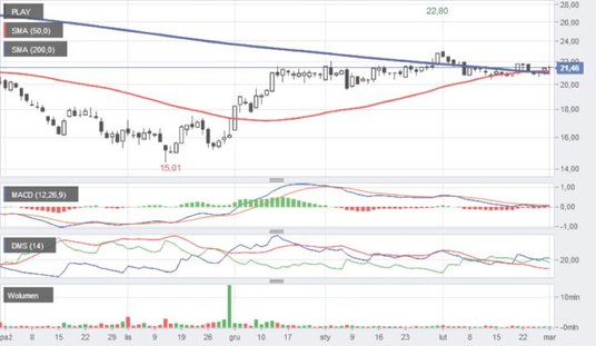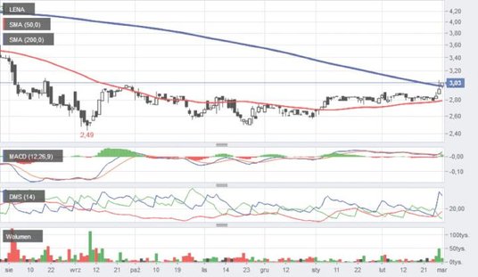 Od kilku miesięcy notowania akcji producenta systemów oświetleniowych poruszają się horyzontalnie, przy poziomie 2,8 zł. Kurs utworzył formację bazy, z której w ostatnim tygodniu zaczął się wybijać. W czwartek cena rosła w porywach do 3,06 zł. To najwyższy poziom od sierpnia ubiegłego roku. Kurs naruszył 200-sesyjną średnią kroczącą, MACD zakręcił w górę i pojawił się wyższy wolumen. Z punktu widzenia techniki czuć oznaki przesilenia. Pułap 2,8 zł pozostaje najbliższym wsparciem, wzmocnionym przez 50-sesyjną średnią.