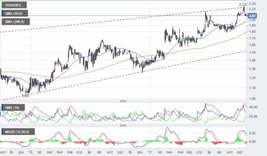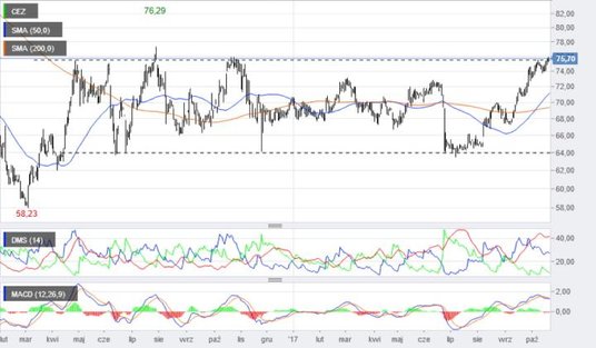 Kurs akcji czeskiej spółki energetycznej porusza się w konsolidacji od marca ubiegłego roku. W sierpniu cena odbiła się od dolnej bandy (64 zł) i w minionym tygodniu oscylowała już przy górnej (75 zł). Kontrarianie będą zapewne obstawiać spadki, ale złoty krzyż utworzony przez średnie kroczące z 50 i 200 sesji przemawia za wybiciem w górę. Jeśli ten scenariusz się potwierdzi, będzie to silny sygnał kupna z zasięgiem ruchu 86 zł. Spadek poniżej 73 zł zaneguje sygnał i zwiększy ryzyko powstania fali spadkowej w obrębie konsolidacji.