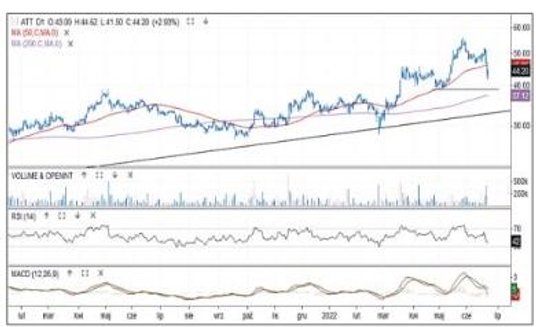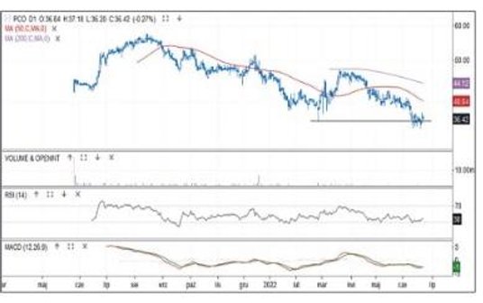 Od szczytu trendu z 27 maja do piątkowego popołudnia akcje chemicznej spółki potaniały o 20 proc. W minionym tygodniu przy wyraźnie podwyższonych obrotach cena przebiła średnią z 50 sesji. Korekta hossy nabiera więc niebezpiecznych rozmiarów. Oscylatory MACD i RSI nie dotarły jeszcze do stref wyprzedania, co daje przestrzeń do kontynuacji krótkoterminowej przeceny. Na horyzoncie pojawia się wsparcie 38,5 zł, wyznaczone przez ostatni lokalny dołek i wzmocnione średnią z 200 sesji. Jeśli bariera ta pęknie, wzrośnie ryzyko silniejszej i trwalszej wyprzedaży.