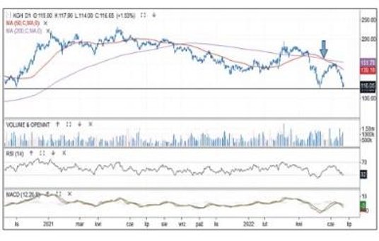 Taniejąca miedź wywołuje presję podażową na notowania akcji lubińskiej spółki. Na początku miesiąca kurs odbił się od ruchomego oporu w postaci średniej z 50 sesji i zniwelował cały dorobek majowej fali wzrostowej. W efekcie koniec tygodnia przyniósł zejście w pobliże dołka bessy 112,3 zł. Jego przebicie będzie klasycznym sygnałem kontynuacji bessy, z potencjalnym celem 100 zł, który stanowi okrągłą, psychologiczną barierę. Na korzyść niedźwiedzi działa formacja krzyża śmierci na średnich z 50 i 200 sesji, która została utworzona miesiąc temu.