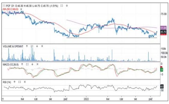 Kurs akcji PCF Group powyżej średniej z 50 sesji