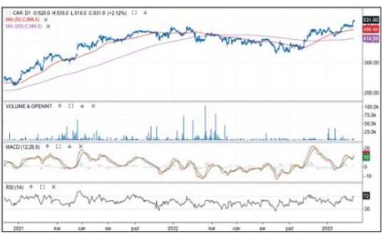 Dystrybutorzy części zamiennych do samochodów radzą sobie całkiem dobrze. Kurs akcji tytułowej spółki w minionym tygodniu przebił długą białą świecą opór 500 zł. W piątek po południu cena rosła w porywach do 533 zł i to jest nowe, historyczne maksimum. Straty z ubiegłego roku zostały już z nawiązką odrobione, a w szerokim ujęciu czasowym notowania zdają się wracać na wzrostową ścieżkę. Taki scenariusz wspiera złoty krzyż, utworzony przez średnie z 50 i 200 sesji w grudniu. Z uwagi na wykupienie sygnalizowane na RSI (podobnie jak z Auto Partner) trzeba liczyć się z ryzykiem korekty. Pułap 500 zł jest teraz najbliższym wsparciem.